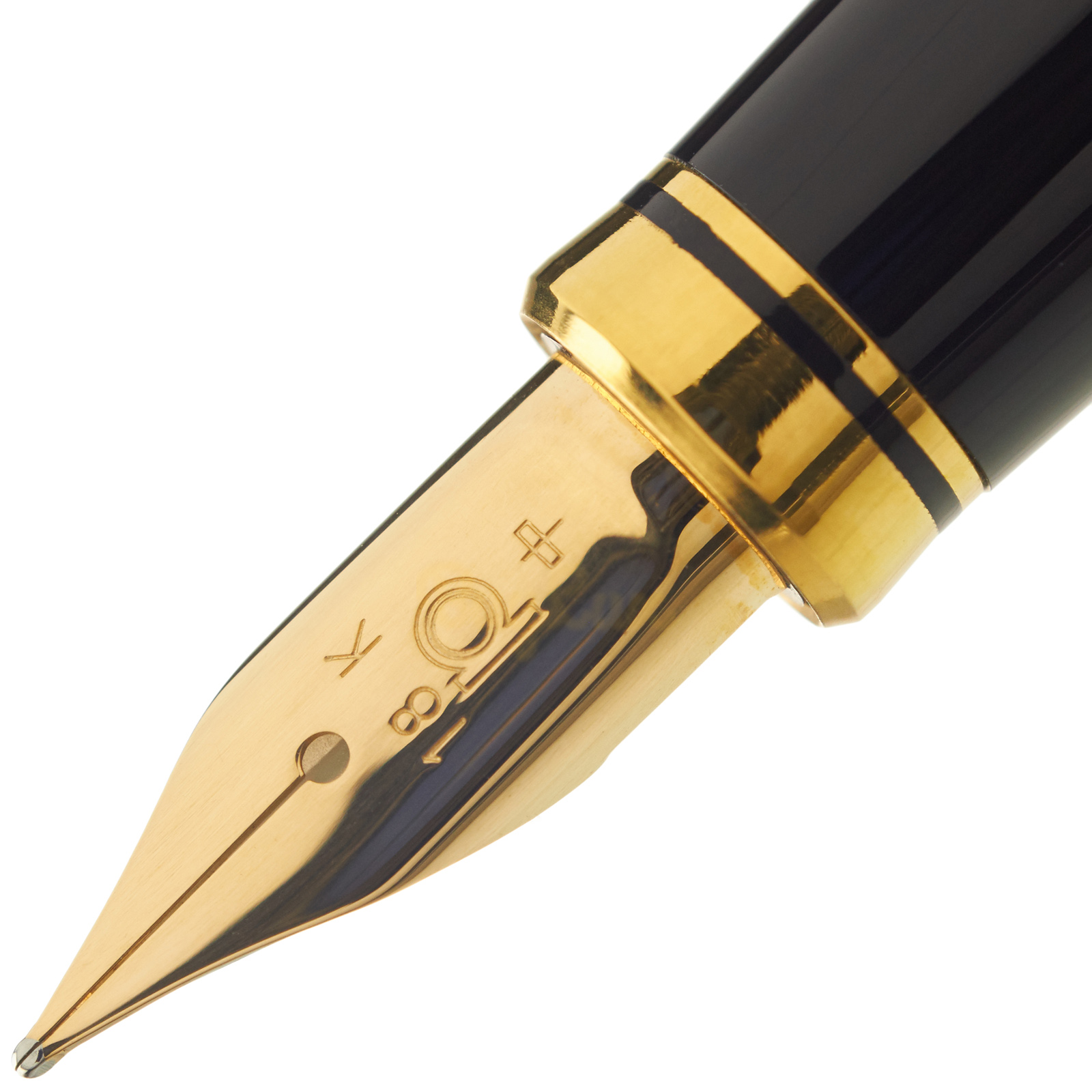 - złota 18 karatowa (próba 750) stalówka rozmiar F (Fine - linia 0,28-0,34mm)