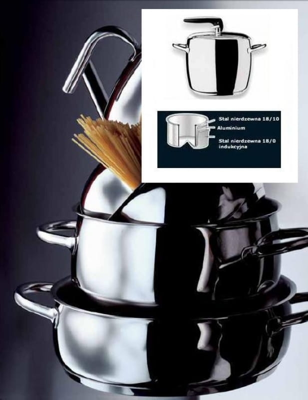 1950 - luksusowe garnki ze stali nierdzewnej 18/10 z wielowarstwowym dnem, aluminiowym rdzeniem.