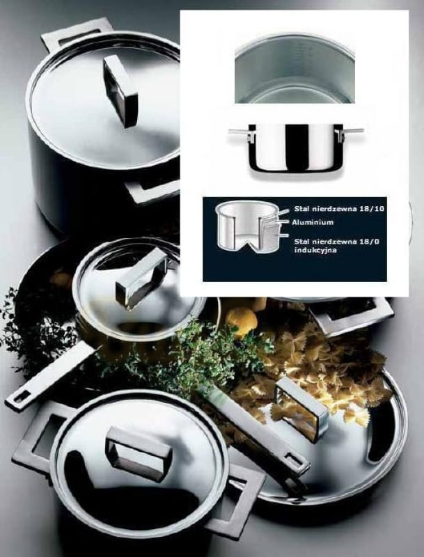 Attiva - luksusowe garnki ze stali nierdzewnej 18/10 z wielowarstwową strukturą, aluminiowym rdzeniem.