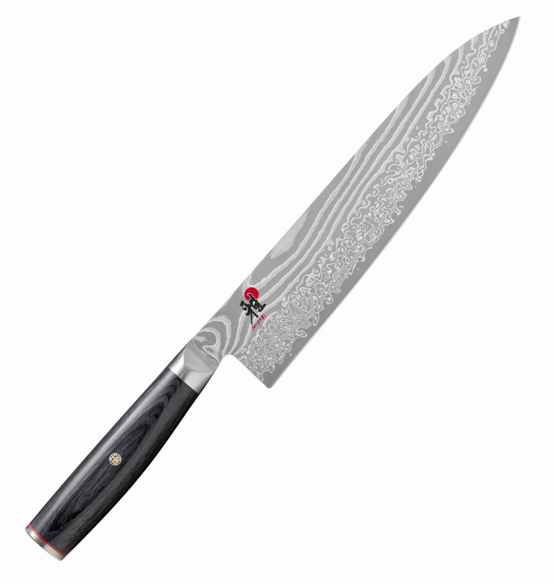 Znakiem szczególnym nowej linii noży Miyabi jest czerwona obwódka wokół trzonka noża i jego stalowe wykończenie. Malowniczy mosaic pin jest znakiem noży klasy Premium
