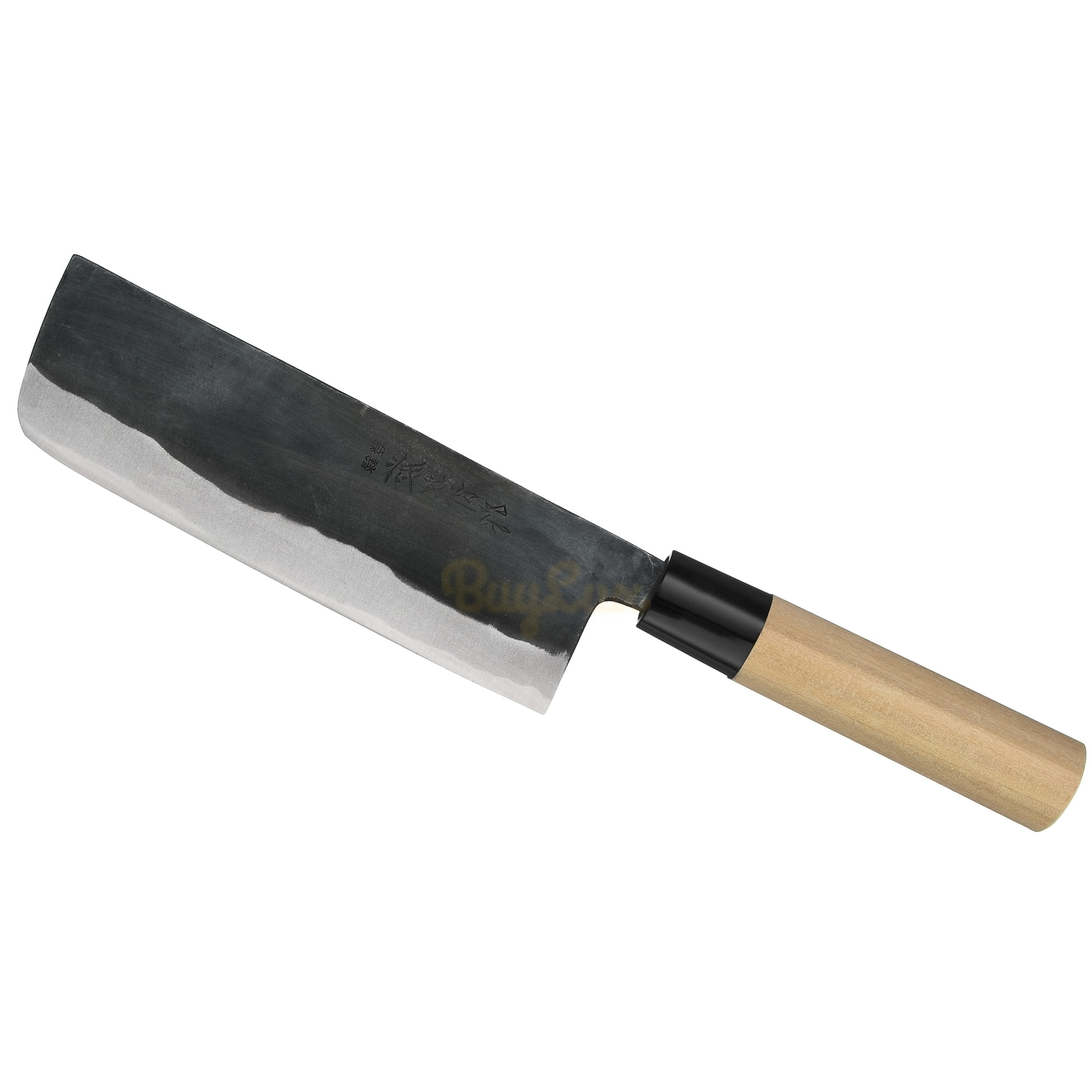- Ostrze zostało wykończone na czarny mat tradycyjną metodą Kurouchi, co pomaga chronić stal węglową przed wchodzeniem w reakcje z żywnością