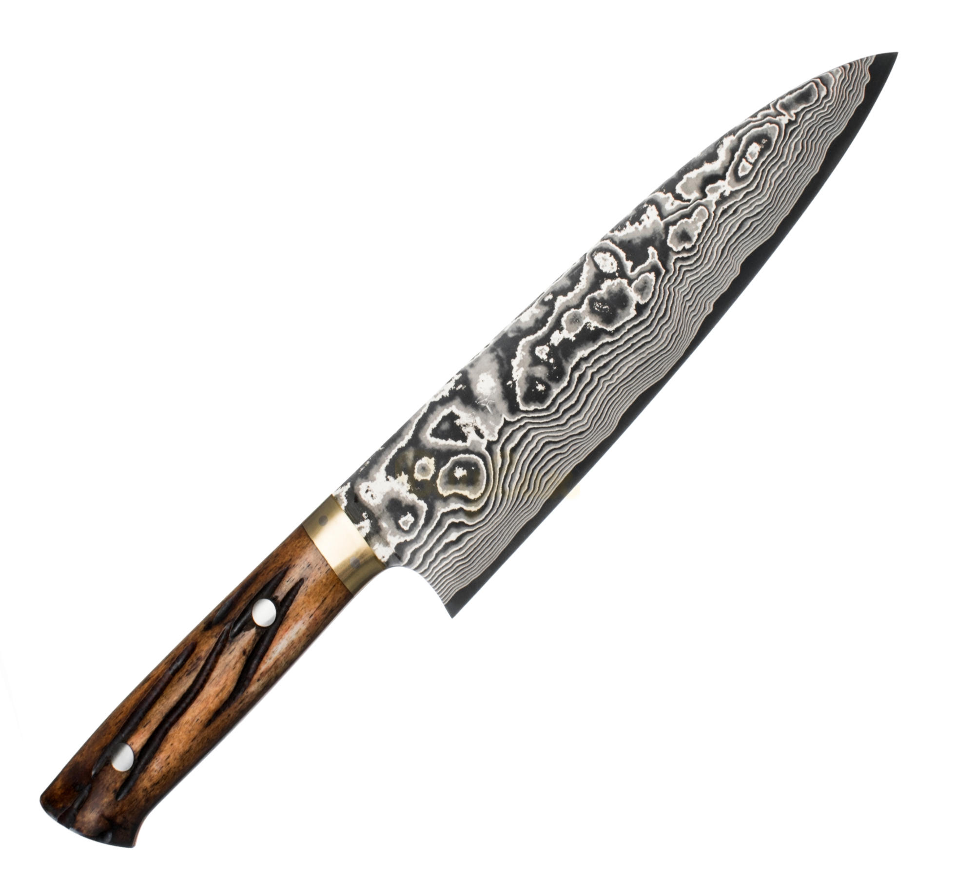 Nóż ręcznie kuty przez japońskiego Mistrza Takeshi Saji. Rękojeść z żółtej byczej kości. Profesjonalna seria YBB dla pasjonatów gotowania.