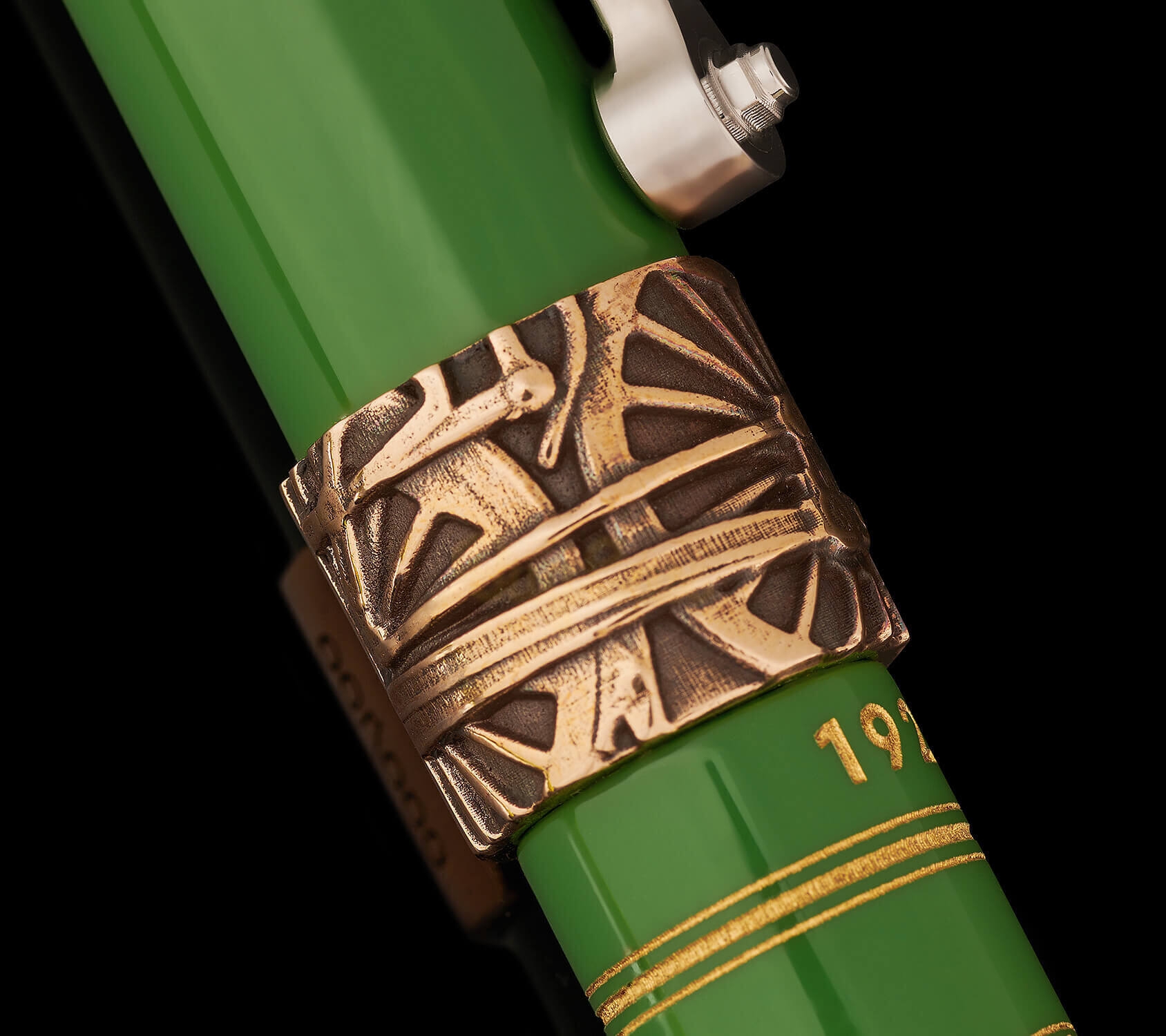 Unikalne okucia pióra zostały wytworzone z oryginalnego brązu pozyskanego z maźnic kołowych lokomotywy 4472, które były używane aż do wczesnych etapów jej niedawnej dogłębnej renowacji. Szczyt nasadki przedstawia drzwi dymne lokomotywy, pierścień nasadki koła, szczyt korpusu pokazuje koło wózka, a klips ze stali nierdzewnej ilustruje pręt sprzęgający.