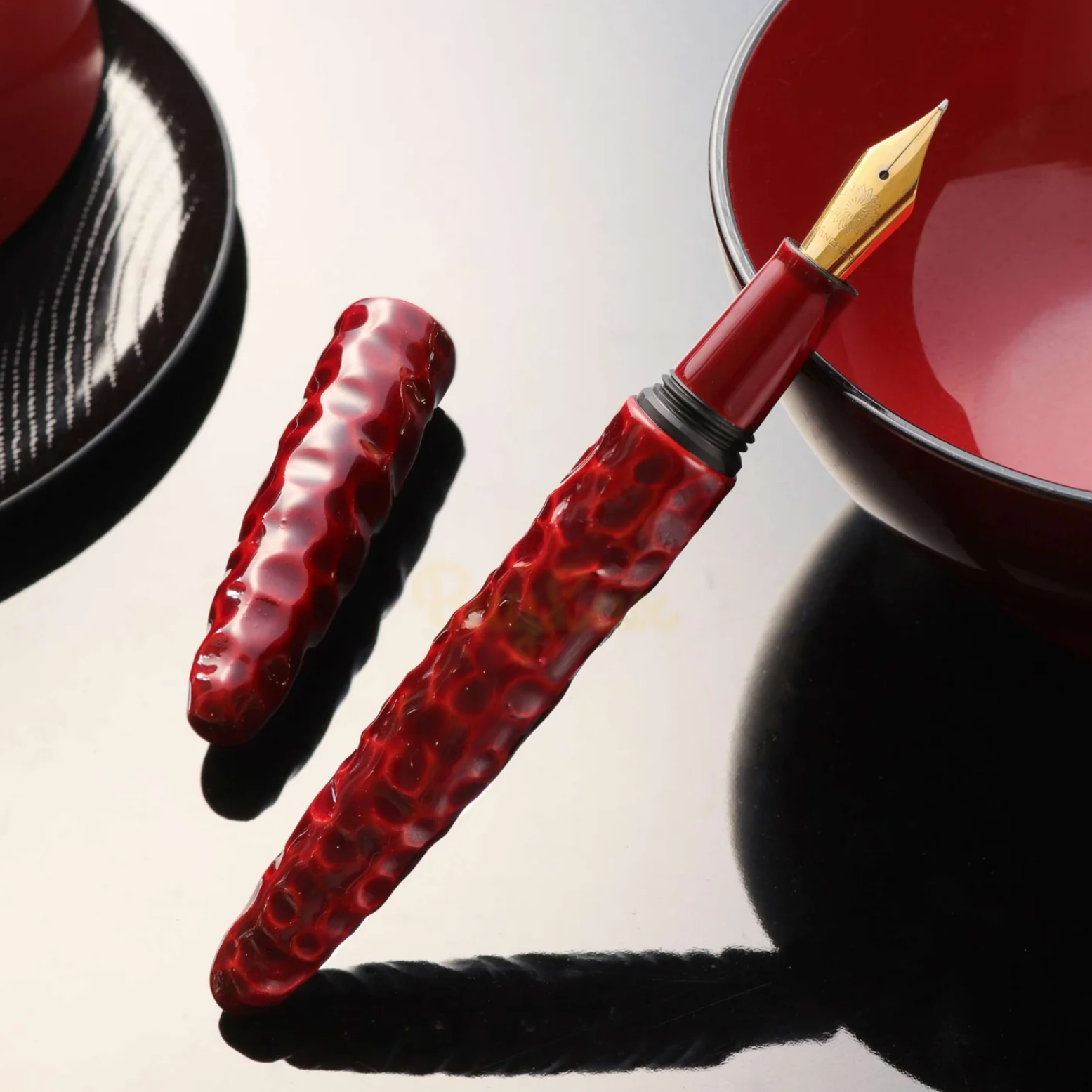 - całe pióro wielokrotnie kryte lakierem Urushi