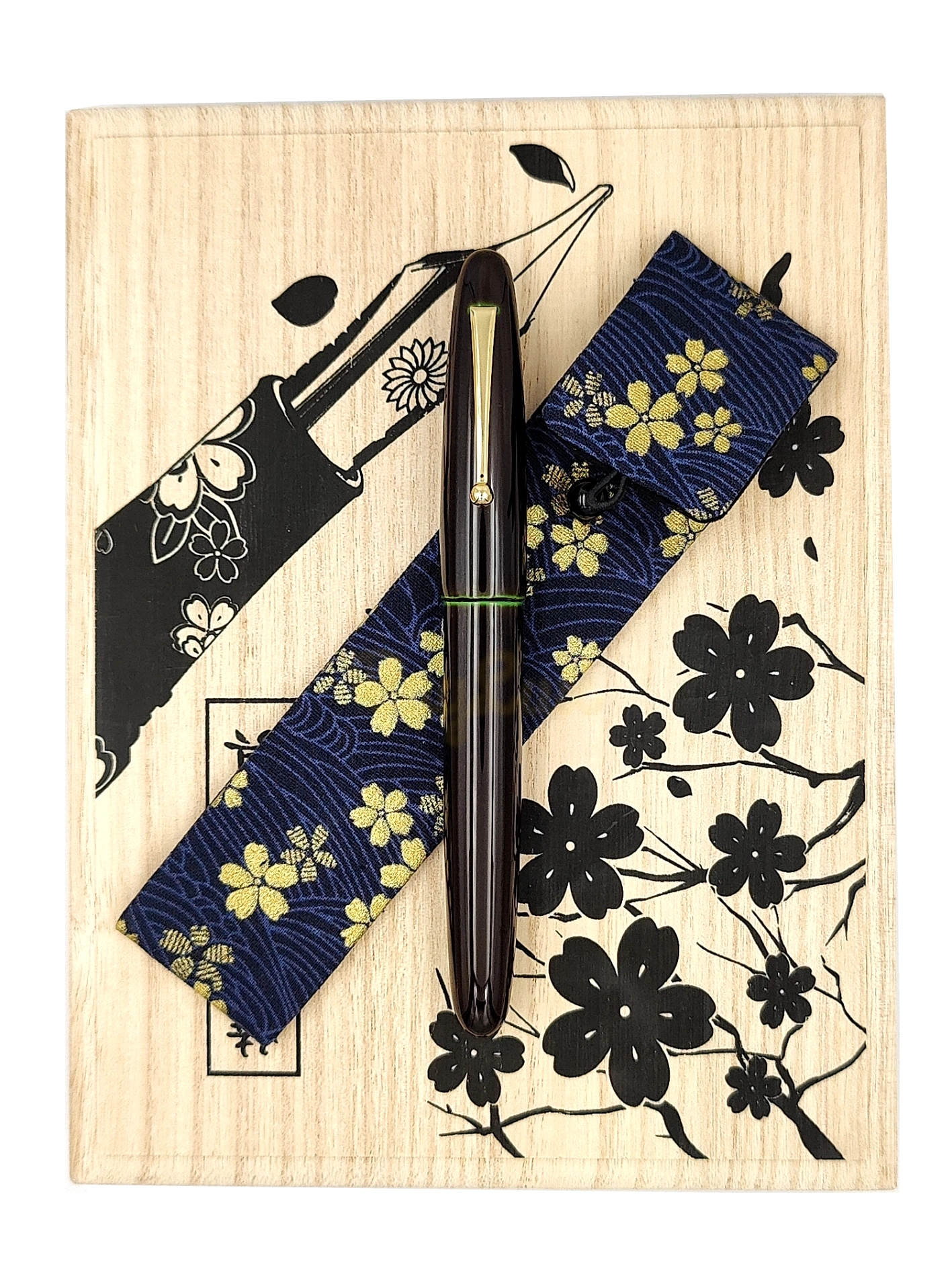 Każde pióro wieczne Wancher jest dostarczane z drewnianym pudełkiem upominkowym, które zawiera japońskie kimono na pióro, międzynarodowy standardowy konwerter do korzystania z atramentu butelkowego i standardowe naboje atramentowe.