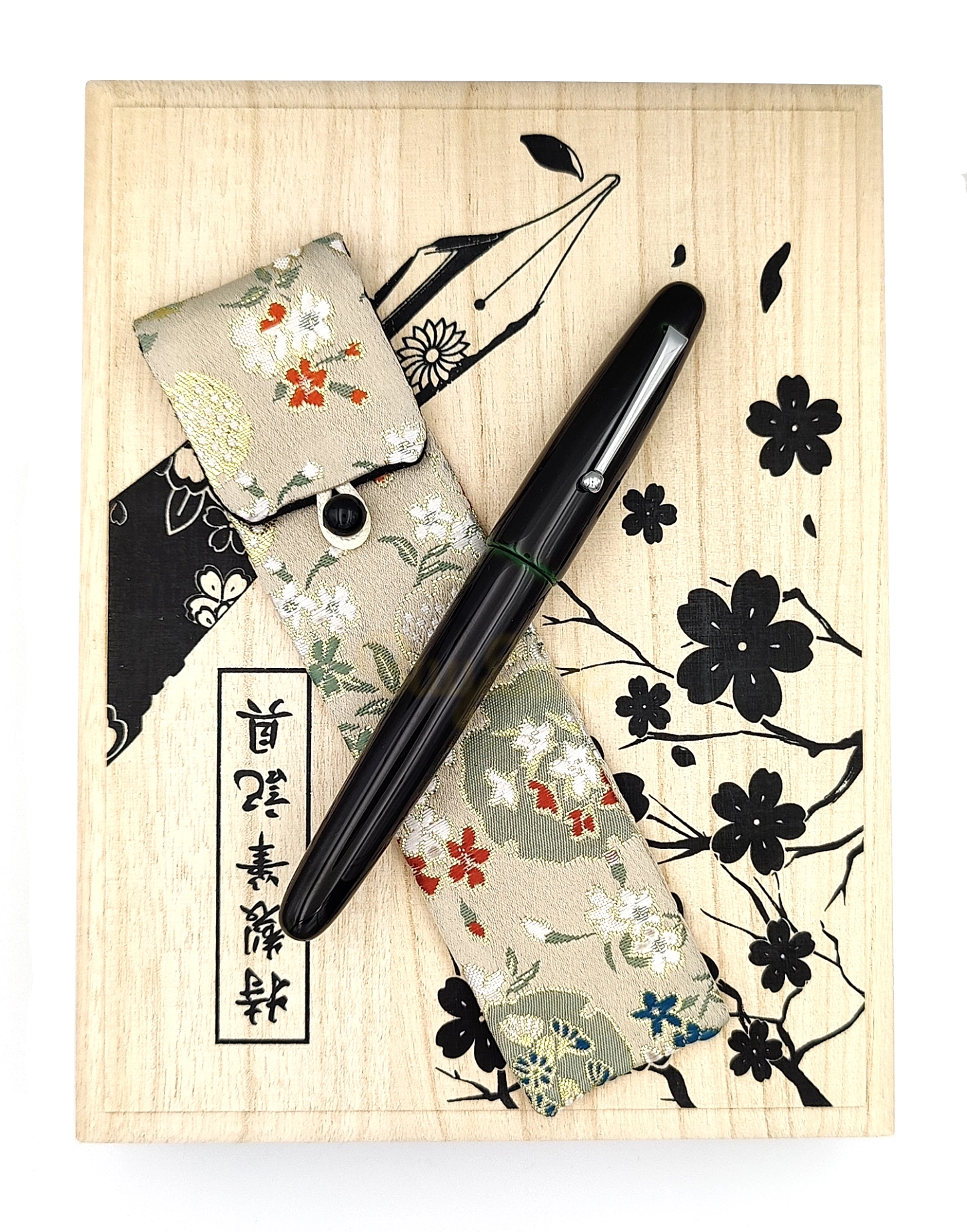 Każde pióro wieczne Wancher jest dostarczane z drewnianym pudełkiem upominkowym, które zawiera japońskie kimono na pióro, międzynarodowy standardowy konwerter do korzystania z atramentu butelkowego i standardowe naboje atramentowe.