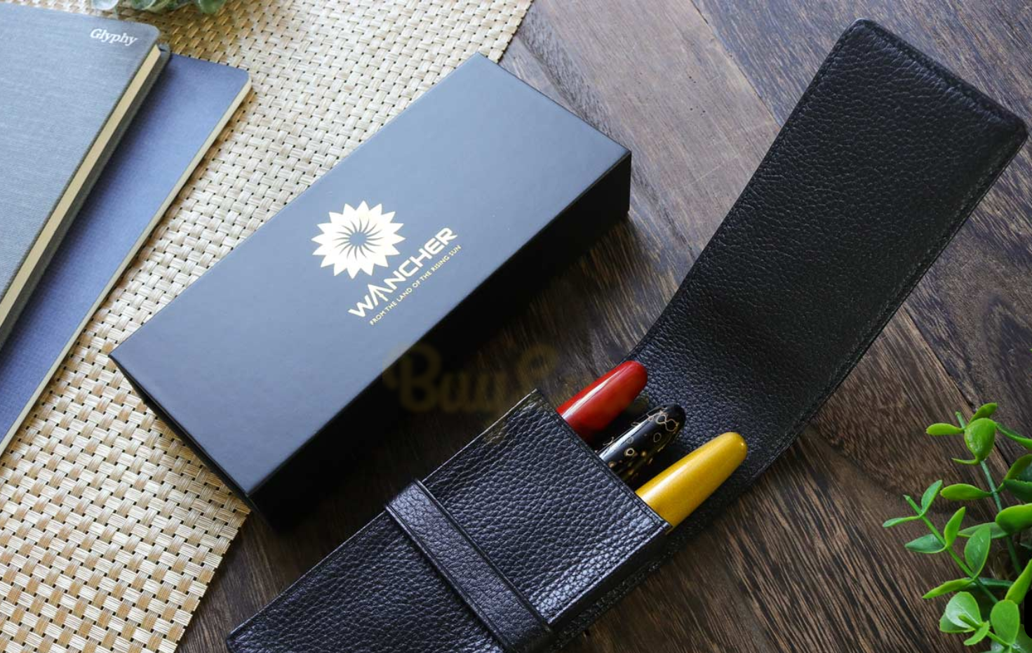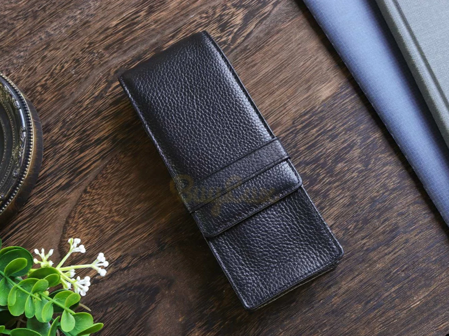 Wancher Terasaki Skórzane Etui na 3 Pióra Czarne